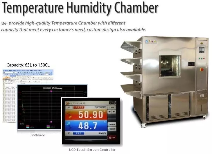 Programmable Constant Temperature Humidity Chamber is for testing capability of heat-endurance, cold-endurance, dryness-endurance, and humidity endurance, suitable for quality control of the industries of electron, electrical equipment, vehicle, metal, foodstuffs, chemistry, building materials, luggage, adhesion tape, printing, packaging, etc.