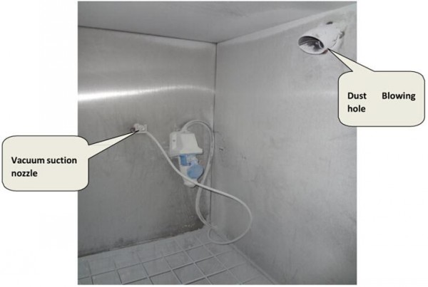 ♦ Concentration of dust can be easily varied by changing the air pressure and the amount of the blowing time.