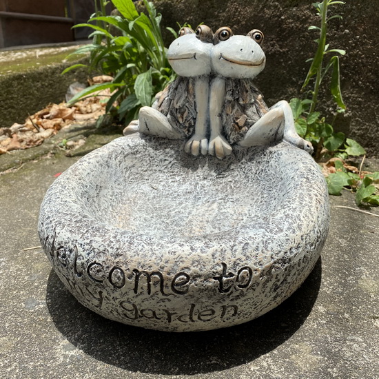 Garden Double Frog Statue Bird Feeder Yard Sculpture for Patio Lawn Decor AF0861