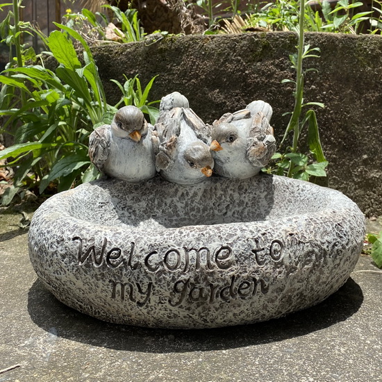 Garden Triple Bird Statue Bird Feeder Yard Sculpture for Patio Lawn Decor AF0863