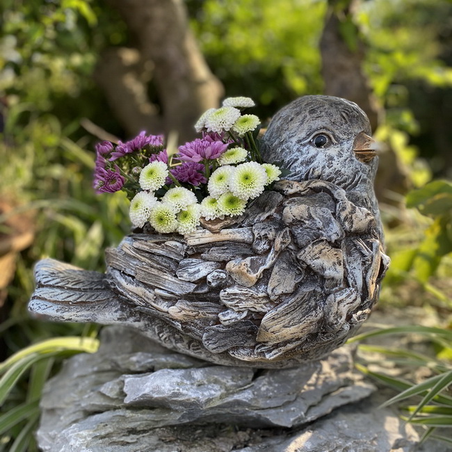 Yard Sculpture Bird Flower Pot Garden Statue for Patio Lawn Decor AF0338