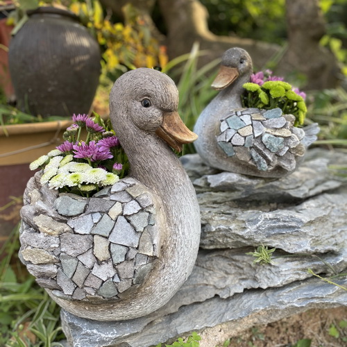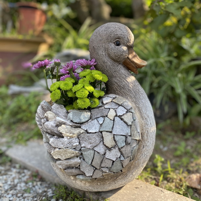 Garden Statue Color Stone Duck Flower Planter for Patio Lawn Yard Decor AF0316