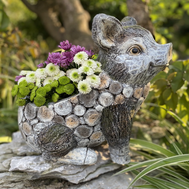 This cute pig is stunning when filled with petite flowers, such as pansies, lobelia, small fuchsia or succulentse and brings your house to life. Each sculpture is individually hand-made, covered of antique finished adding a charming authenticity. The sculpture is crafted from magnesia, which is less fragile and lightweight, safe for outdoor use in all weather conditions.