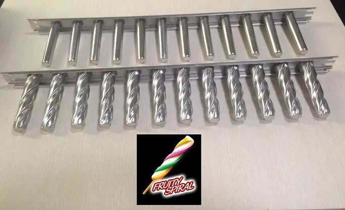 A molds is drill shape, B molds is lolly bar, A+B molds strips for Ice cream production line produced by NANJING PUYUAN or Ningbo Senso etc..