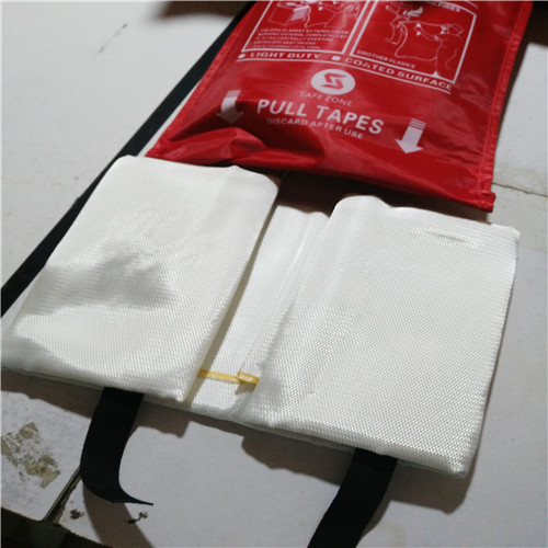 Fire blanket is a specially treated glass fiber fabric which is very soft, smooth and does not irritate skin. Which use fiberglass thread to sew the fold and fire resistance ribbon.