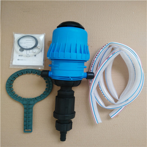 The proportional pump takes the flowing pressure water as power, having small water pressure loss, without any other power facilities. It uses water power of the proportional pump as engine which drives the piston and the connecting rod inside the proportional pump, sucks up the liquid additive directly and makes it dissolve in the water flow. This device moves up and down in a cylinder. When pressing out the water, it uniformly sucks the additives loaded at the bottom of the container into the water flow through a tube. Repeat the up-and-down motion until the effect is achieved that the additive is added to the flowing water evenly and constantly.