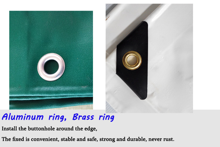 PVC tarpaulin covers is made through cutting,hemming,sewing and adding eyelets(aluminum,brass) and ropes with different sizes.