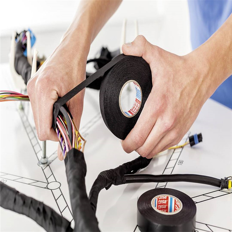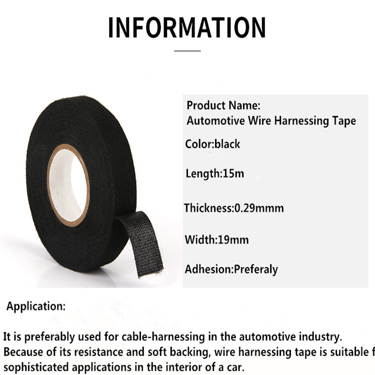Black Automotive Wire Harness Loom Adhesive Cloth Fabric Tape