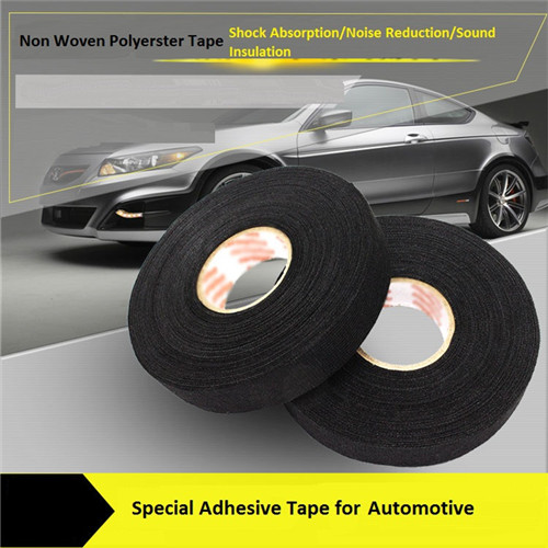 Non woven polyester tape is based on soft non-woven fabric coated with aggressive pressure sensitive adhesive. Quality fabric base provides good anti-corrosion, anti-abrasion and anti-aging property. It has excellent noise reduction function, flexibility and even unwinding force; hand tear-able.designed for automotive wire harnessing, used at automobile’s interior exquisite parts.