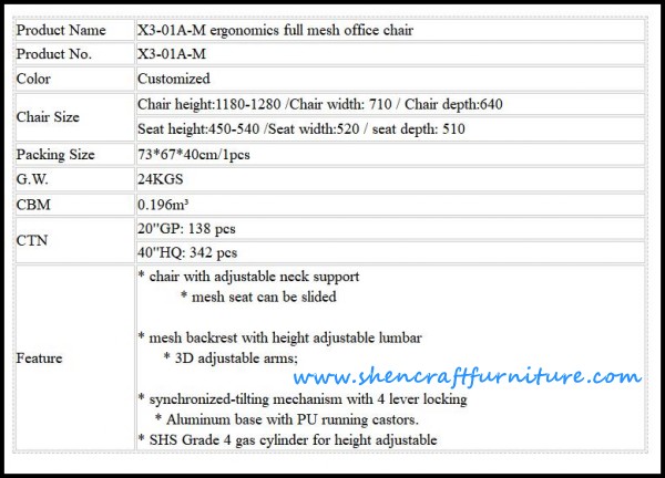 Model No.: HS-X3-01A mesh office chair