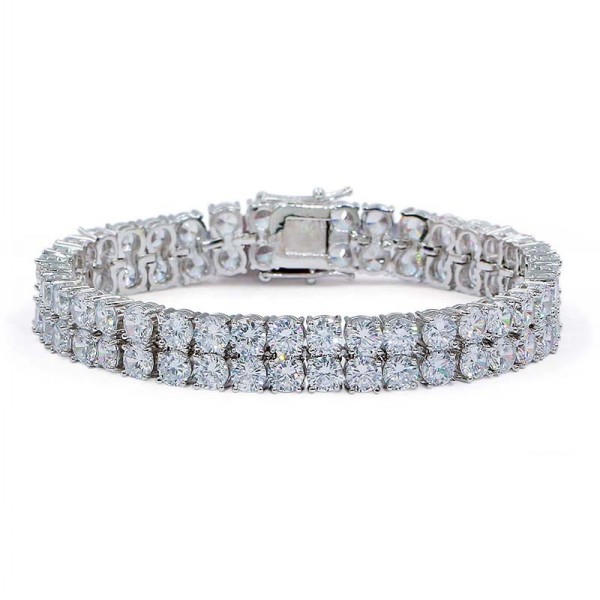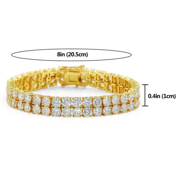 3mm Copper Zircon Tennis Chain Double Rows Bracelet Hip Hop Bling Jewelry |