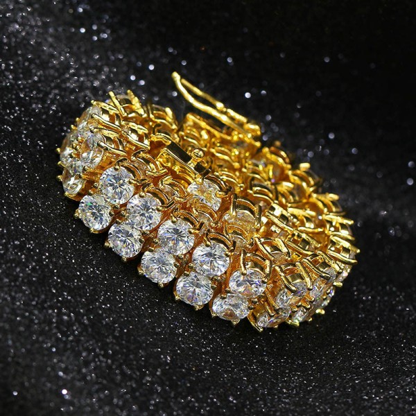 3mm Copper Zircon Tennis Chain Double Rows Bracelet Hip Hop Bling Jewelry Gold