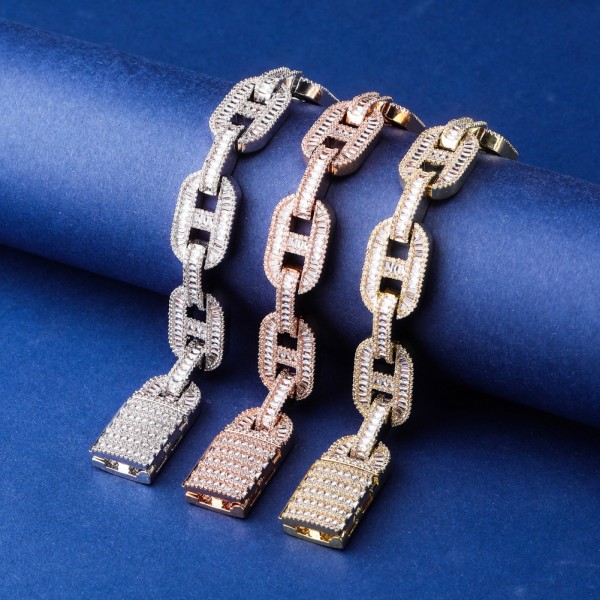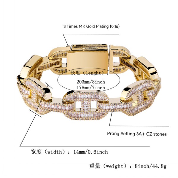 Item Name   2020 Hottest 18K Gold Plated Baguette Bracelet Miami Custom Chain