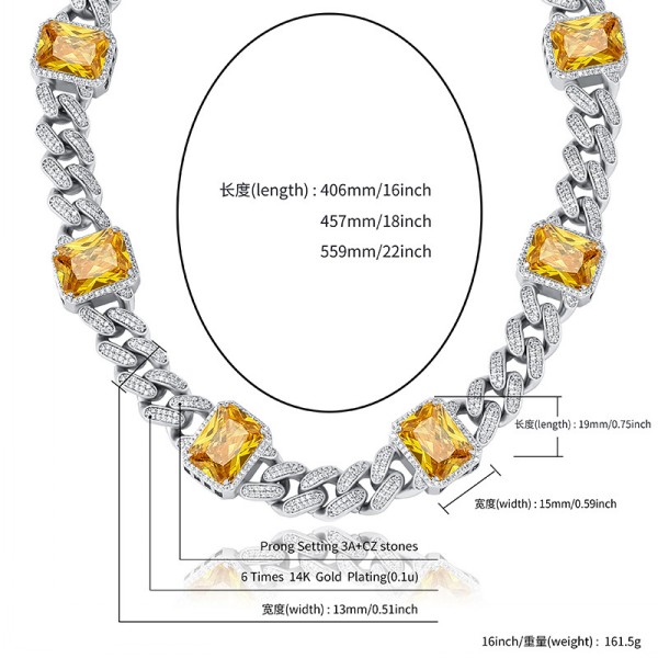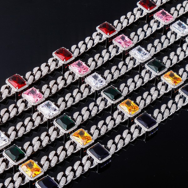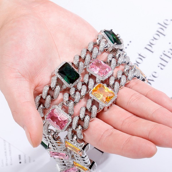 Rock Rap Hiphop Luxury Iced Out Full Crystal Cuban Link Chain Bracelet Necklace