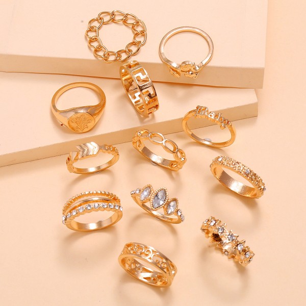 12pcs/set Women Ring Set Rings For Women Jewelry Gold Plated Rings