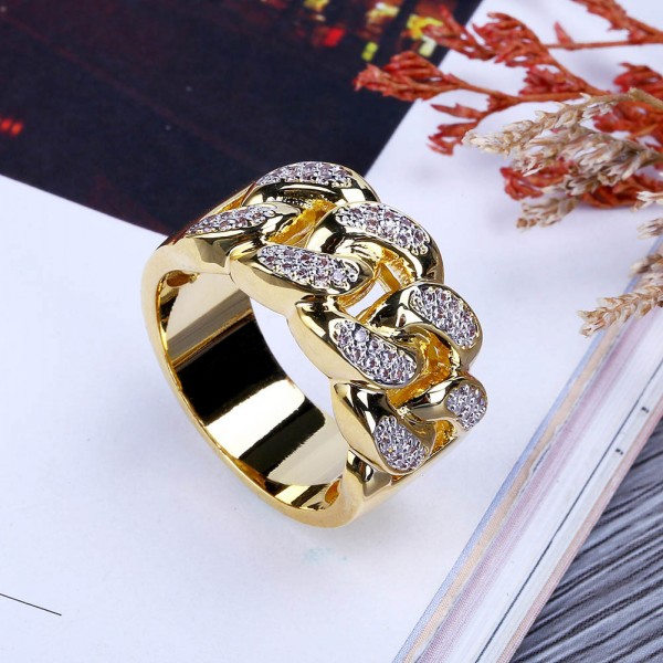 Iced Out Personalized Fashion Cuban Link Chain Ring 18K Gold Plated Bling CZ