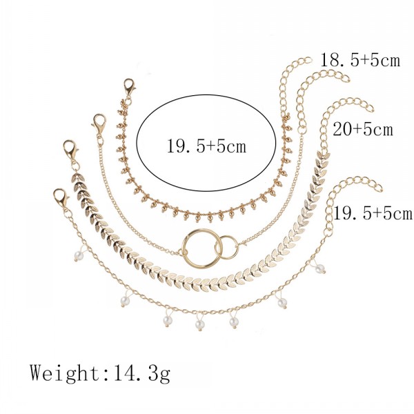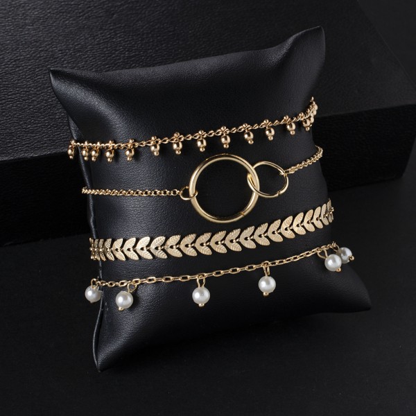 Item Name   Gold Plated Jewelry Women Plain Pearls Alloy 4 Pc Bracelet Set