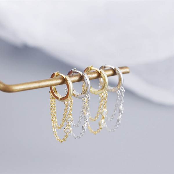 Item Name   925 Silver Jewelry 18K Plated Chain Connected Link Hoops Earring